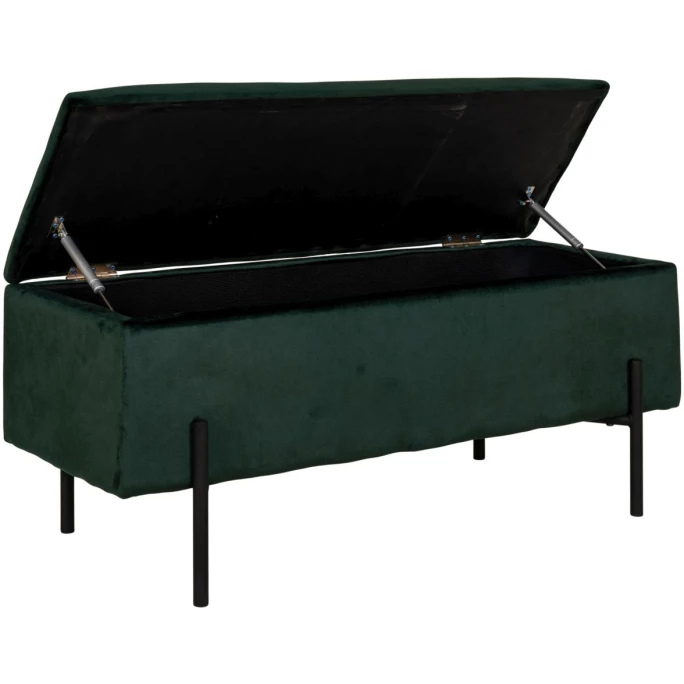 Ein tolles Ambiente schaffen, und dabei gleichzeitig für Stauraum sorgen? Das ist ganz leicht möglich mit der wunderbaren Sitzbank Watford aus dem Hause House Nordic. Mit den Metallbeinen und einem weichen Samtbezug aus hochwertigem Polyester erzeugt die ausgeklügelte House Nordic Sitzbank Watford einen spannenden Kontrast. Sie passt damit perfekt in das moderne Wohnambiente und sorgt sowohl im Flur, Schlafzimmer oder Wohnzimmer für ein behagliches Flair. Gleichzeitig können in der Watford Sitzbank eine Menge Dinge mühelos verstaut werden, die man nicht ständig braucht aber doch gerne griffbereit hat. Der praktische Klappdeckel ermöglicht ein schnelles und problemloses öffnen und schließen. Zudem ist das Designer-Möbelstück besonders pflegeleicht, denn es genügt Sie mit einem feuchten Tuch zu wischen und abzusaugen. Fertig! Lassen Sie sich von der wunderbaren Sitzbank Watford von House Nordic begeistern und setzen Sie einen gekonnten Akzent im Samt-Look.