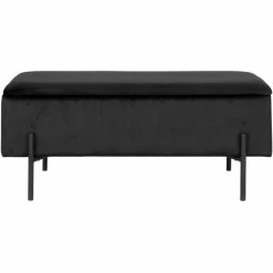Ein tolles Ambiente schaffen, und dabei gleichzeitig für Stauraum sorgen? Das ist ganz leicht möglich mit der wunderbaren Sitzbank Watford aus dem Hause House Nordic. Mit den Metallbeinen und einem weichen Samtbezug aus hochwertigem Polyester erzeugt die ausgeklügelte House Nordic Sitzbank Watford einen spannenden Kontrast. Sie passt damit perfekt in das moderne Wohnambiente und sorgt sowohl im Flur, Schlafzimmer oder Wohnzimmer für ein behagliches Flair. Gleichzeitig können in der Watford Sitzbank eine Menge Dinge mühelos verstaut werden, die man nicht ständig braucht aber doch gerne griffbereit hat. Der praktische Klappdeckel ermöglicht ein schnelles und problemloses öffnen und schließen. Zudem ist das Designer-Möbelstück besonders pflegeleicht, denn es genügt Sie mit einem feuchten Tuch zu wischen und abzusaugen. Fertig! Lassen Sie sich von der wunderbaren Sitzbank Watford von House Nordic begeistern und setzen Sie einen gekonnten Akzent im Samt-Look.