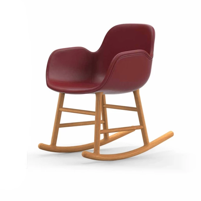 Beeindrucken Sie Ihre Gäste mit dem skandinavischen gepolsterten Normann Copenhagen Form Rocking Schaukelstuhl inklusive komfortablen Armlehnen. Der nahtlose & formvollendete Look der Form Rocking Schaukelstühle wurde designt vom dänischen Designer Simon Legald. Er schaffte eine Liaison aus robustem, gepolstertem Hartplastik, aus welcher die Sitzschale des Form Stuhls ist, und einem klassischen, zweiteiligen Schaukelstuhl-Unterbau aus natürlichem, robustem Eichenholz. Dadurch wird beim Normann Copenhagen Form Rocking Stuhl ein leichter Kontrast zwischen Sitzschale und dem Schaukelunterbau gesetzt, der durch das Naturholz sehr nordisch & originär wirkt. Der Designer-Stuhl Normann Copenhagen Form Rocking bietet einen hervorragenden, ergonomischen Halt für den Rücken und viel Freiraum für Ihre Füße.