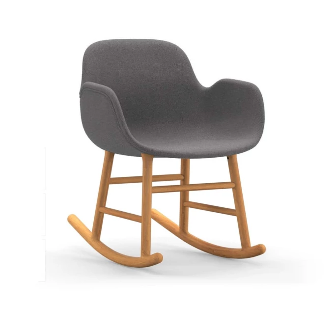 Beeindrucken Sie Ihre Gäste mit dem skandinavischen gepolsterten Normann Copenhagen Form Rocking Schaukelstuhl inklusive komfortablen Armlehnen. Der nahtlose & formvollendete Look der Form Rocking Schaukelstühle wurde designt vom dänischen Designer Simon Legald. Er schaffte eine Liaison aus robustem, gepolstertem Hartplastik, aus welcher die Sitzschale des Form Stuhls ist, und einem klassischen, zweiteiligen Schaukelstuhl-Unterbau aus natürlichem, robustem Eichenholz. Dadurch wird beim Normann Copenhagen Form Rocking Stuhl ein leichter Kontrast zwischen Sitzschale und dem Schaukelunterbau gesetzt, der durch das Naturholz sehr nordisch & originär wirkt. Der Designer-Stuhl Normann Copenhagen Form Rocking bietet einen hervorragenden, ergonomischen Halt für den Rücken und viel Freiraum für Ihre Füße.