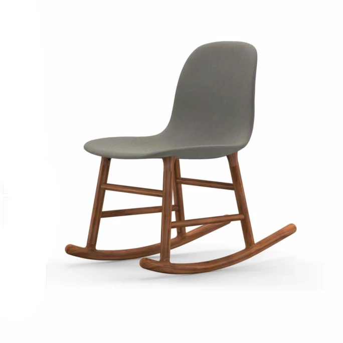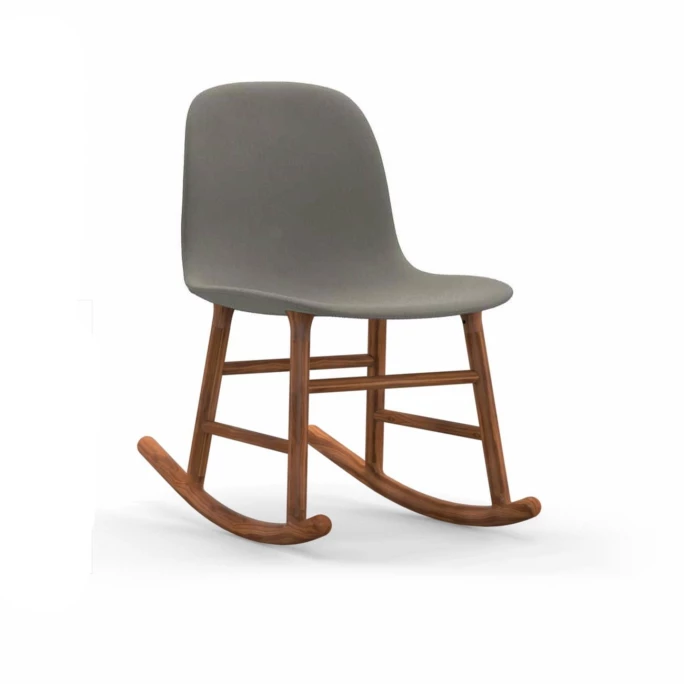 Beeindrucken Sie Ihre Gäste mit dem skandinavischen gepolsterten Normann Copenhagen Form Rocking Schaukelstuhl. Der nahtlose & formvollendete Look der Form Rocking Schaukelstühle wurde designt vom dänischen Designer Simon Legald. Er schaffte eine Liaison aus robustem, gepolstertem Hartplastik, aus welcher die Sitzschale des Form Stuhls ist, und einem klassischen, zweiteiligen Schaukelstuhl-Unterbau aus natürlichem, robustem Walnussholz. Dadurch wird beim Normann Copenhagen Form Rocking Stuhl ein leichter Kontrast zwischen Sitzschale und dem Schaukelunterbau gesetzt, der durch das Naturholz sehr nordisch & originär wirkt. Der Designer-Stuhl Normann Copenhagen Form Rocking bietet einen hervorragenden, ergonomischen Halt für den Rücken und viel Freiraum für Ihre Füße.