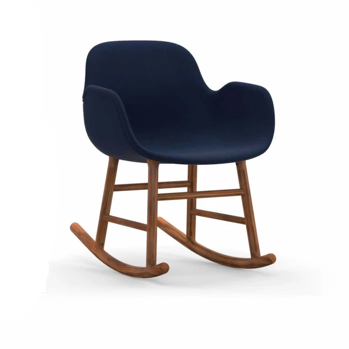 Beeindrucken Sie Ihre Gäste mit dem skandinavischen gepolsterten Normann Copenhagen Form Rocking Schaukelstuhl inklusive komfortablen Armlehnen. Der nahtlose & formvollendete Look der Form Rocking Schaukelstühle wurde designt vom dänischen Designer Simon Legald. Er schaffte eine Liaison aus robustem, gepolstertem Hartplastik, aus welcher die Sitzschale des Form Stuhls ist, und einem klassischen, zweiteiligen Schaukelstuhl-Unterbau aus natürlichem, robustem Walnussholz. Dadurch wird beim Normann Copenhagen Form Rocking Stuhl ein leichter Kontrast zwischen Sitzschale und dem Schaukelunterbau gesetzt, der durch das Naturholz sehr nordisch & originär wirkt. Der Designer-Stuhl Normann Copenhagen Form Rocking bietet einen hervorragenden, ergonomischen Halt für den Rücken und viel Freiraum für Ihre Füße.