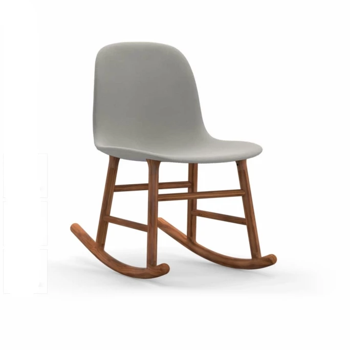 Beeindrucken Sie Ihre Gäste mit dem skandinavischen gepolsterten Normann Copenhagen Form Rocking Schaukelstuhl. Der nahtlose & formvollendete Look der Form Rocking Schaukelstühle wurde designt vom dänischen Designer Simon Legald. Er schaffte eine Liaison aus robustem, gepolstertem Hartplastik, aus welcher die Sitzschale des Form Stuhls ist, und einem klassischen, zweiteiligen Schaukelstuhl-Unterbau aus natürlichem, robustem Walnussholz. Dadurch wird beim Normann Copenhagen Form Rocking Stuhl ein leichter Kontrast zwischen Sitzschale und dem Schaukelunterbau gesetzt, der durch das Naturholz sehr nordisch & originär wirkt. Der Designer-Stuhl Normann Copenhagen Form Rocking bietet einen hervorragenden, ergonomischen Halt für den Rücken und viel Freiraum für Ihre Füße.