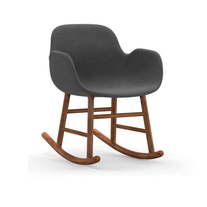 Beeindrucken Sie Ihre Gäste mit dem skandinavischen gepolsterten Normann Copenhagen Form Rocking Schaukelstuhl inklusive komfortablen Armlehnen. Der nahtlose & formvollendete Look der Form Rocking Schaukelstühle wurde designt vom dänischen Designer Simon Legald. Er schaffte eine Liaison aus robustem, gepolstertem Hartplastik, aus welcher die Sitzschale des Form Stuhls ist, und einem klassischen, zweiteiligen Schaukelstuhl-Unterbau aus natürlichem, robustem Walnussholz. Dadurch wird beim Normann Copenhagen Form Rocking Stuhl ein leichter Kontrast zwischen Sitzschale und dem Schaukelunterbau gesetzt, der durch das Naturholz sehr nordisch & originär wirkt. Der Designer-Stuhl Normann Copenhagen Form Rocking bietet einen hervorragenden, ergonomischen Halt für den Rücken und viel Freiraum für Ihre Füße.
