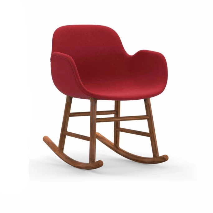 Beeindrucken Sie Ihre Gäste mit dem skandinavischen gepolsterten Normann Copenhagen Form Rocking Schaukelstuhl inklusive komfortablen Armlehnen. Der nahtlose & formvollendete Look der Form Rocking Schaukelstühle wurde designt vom dänischen Designer Simon Legald. Er schaffte eine Liaison aus robustem, gepolstertem Hartplastik, aus welcher die Sitzschale des Form Stuhls ist, und einem klassischen, zweiteiligen Schaukelstuhl-Unterbau aus natürlichem, robustem Walnussholz. Dadurch wird beim Normann Copenhagen Form Rocking Stuhl ein leichter Kontrast zwischen Sitzschale und dem Schaukelunterbau gesetzt, der durch das Naturholz sehr nordisch & originär wirkt. Der Designer-Stuhl Normann Copenhagen Form Rocking bietet einen hervorragenden, ergonomischen Halt für den Rücken und viel Freiraum für Ihre Füße.